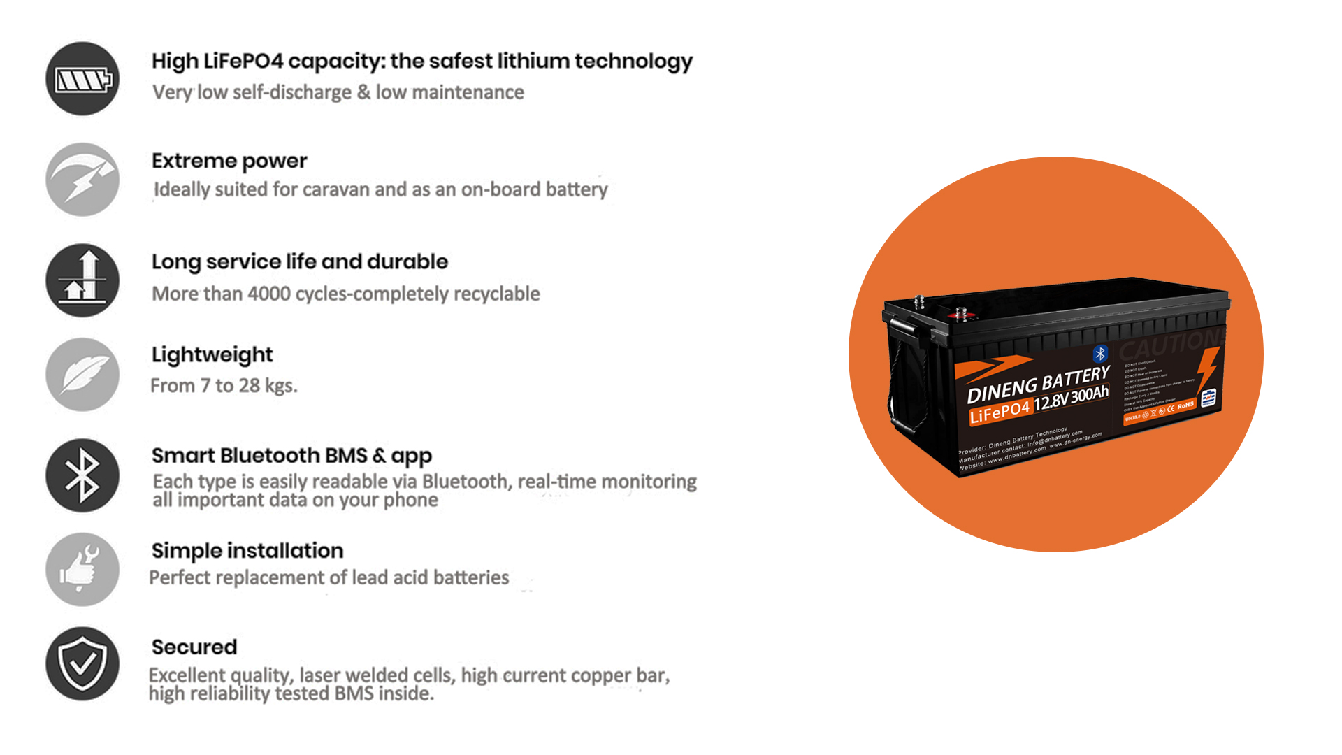 Dineng LiFePo4 batteries is ideal as a lightweight and long-lasting replacement for lead batteries (lead acid).