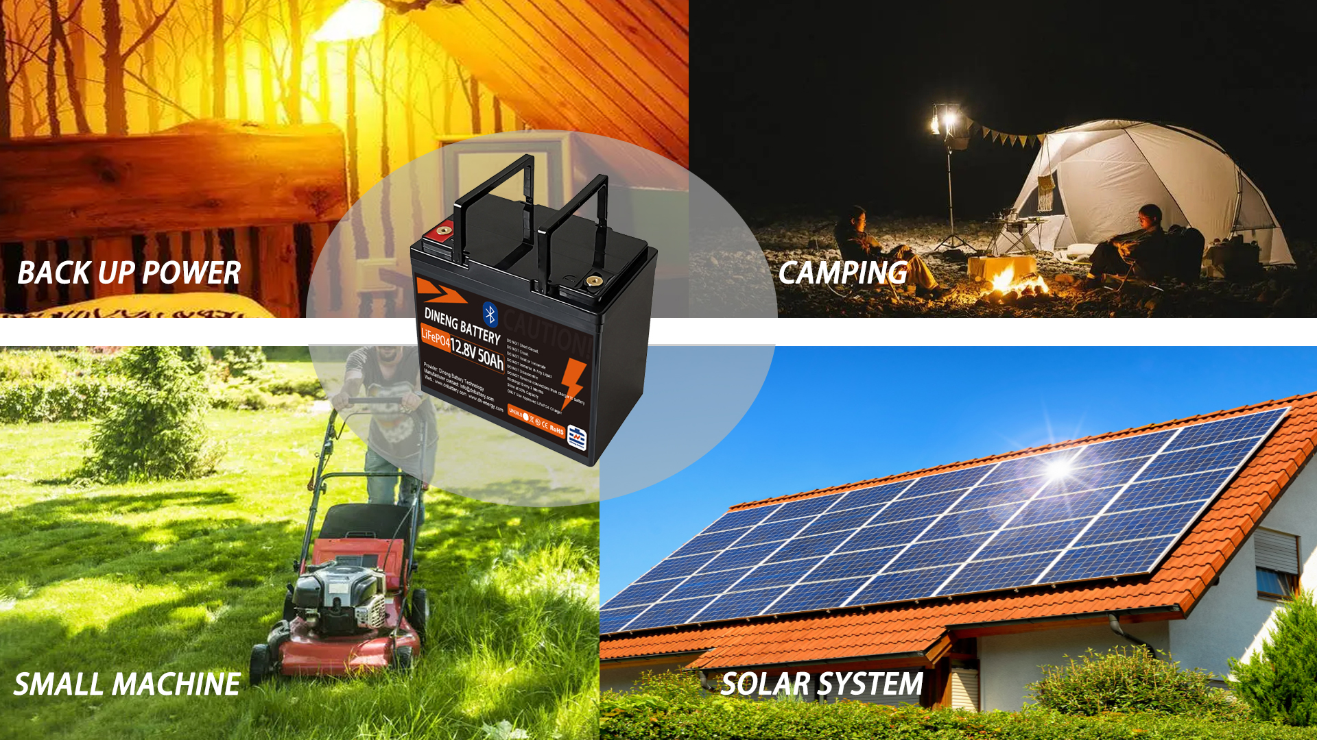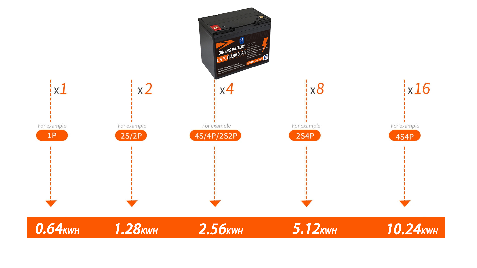 Dineng battery 12V 50Ah Lithium batteries support up to Max 4S4P connections to get more energy up to 10.24kWh.